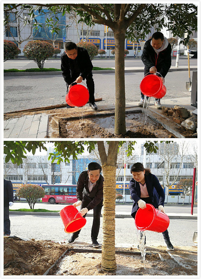 植樹現(xiàn)場每個(gè)人都熱情高漲、干勁十足、興致勃勃。大家密切配合,三人成組、分工協(xié)作,揮鍬填土、壓平踏實(shí),整培圍堰、提桶澆水,每一個(gè)環(huán)節(jié)都一絲不茍,到處都是忙碌的身影……現(xiàn)場洋溢著團(tuán)結(jié)協(xié)作、昂揚(yáng)向上的融洽氛圍。