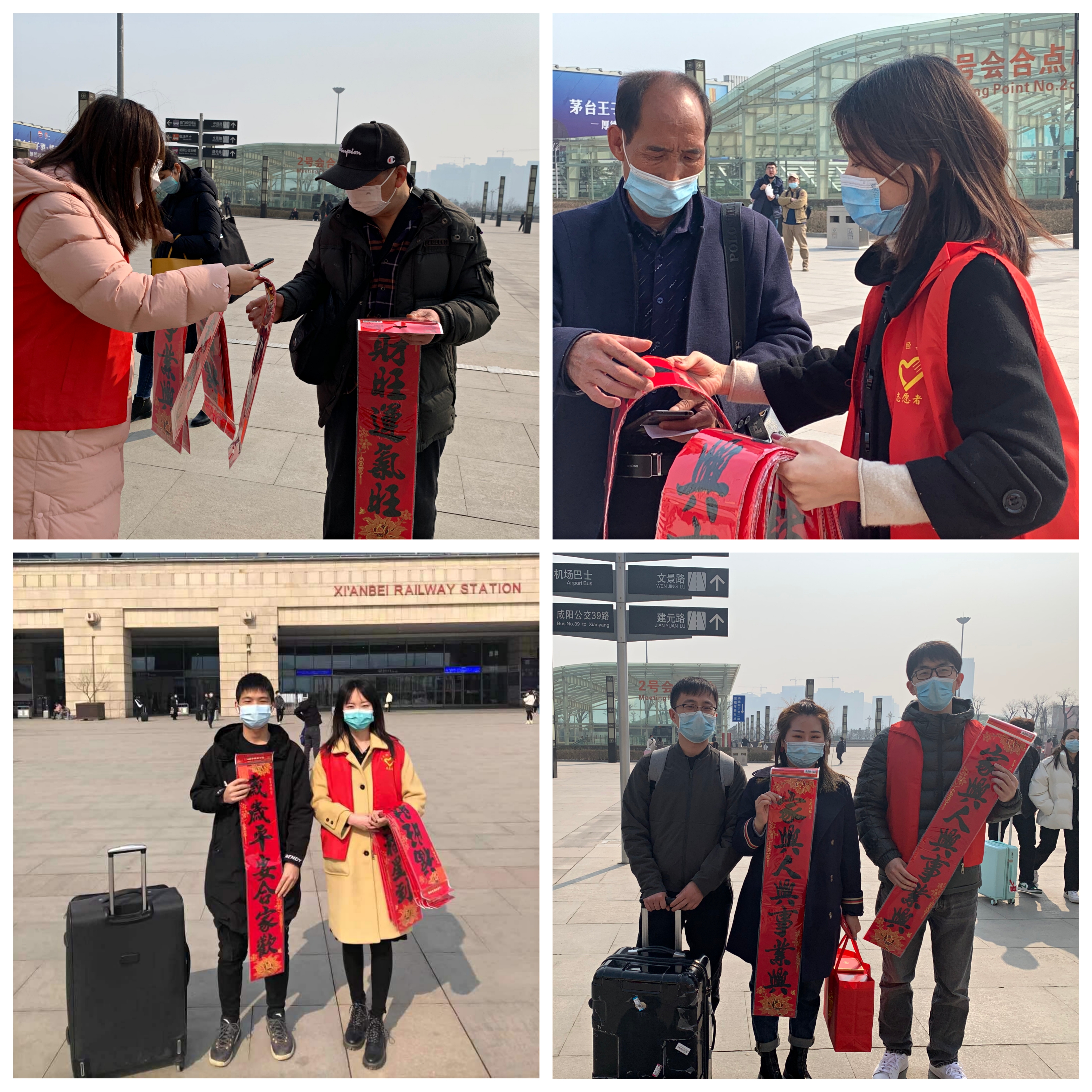 活動開始前,志愿者們明確分工,并根據可能發(fā)生的突發(fā)狀況做好應急措施。活動中,志愿者們各司其職,針對不同旅客的需求,提供問詢指導、行李幫提等志愿服務,并向返鄉(xiāng)人員開展了 送春聯送祝?;顒樱靡活w公益心溫暖了旅客的回家路。