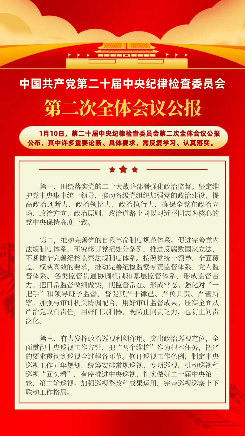 中國共產(chǎn)黨第二十屆中央紀(jì)律檢查委員會(huì)第二次全體會(huì)議,于2023年1月9日至10日在北京舉行。